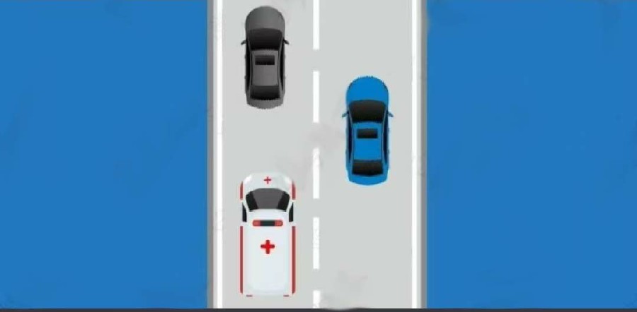 24/25 行车中遇抢救伤员的救护车从本车道后方驶来时,以下做法正确的是()。