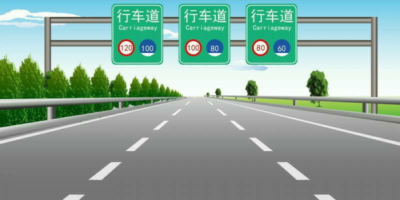 11/25 如图所示,在同向3车道高速公路上行车,车速低于每小时80公里的车辆应在哪条车道上行驶?